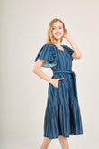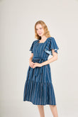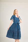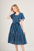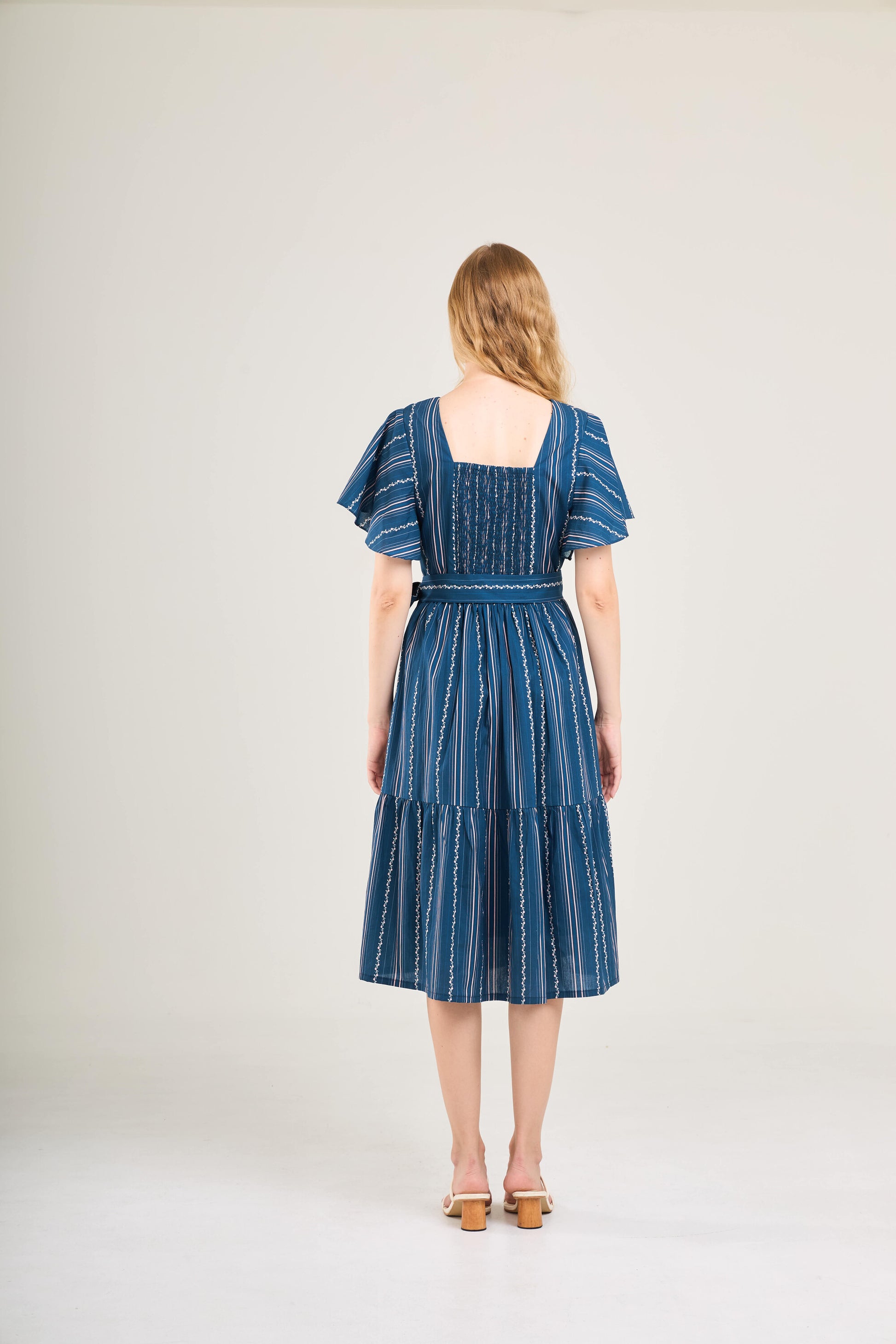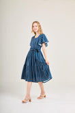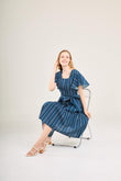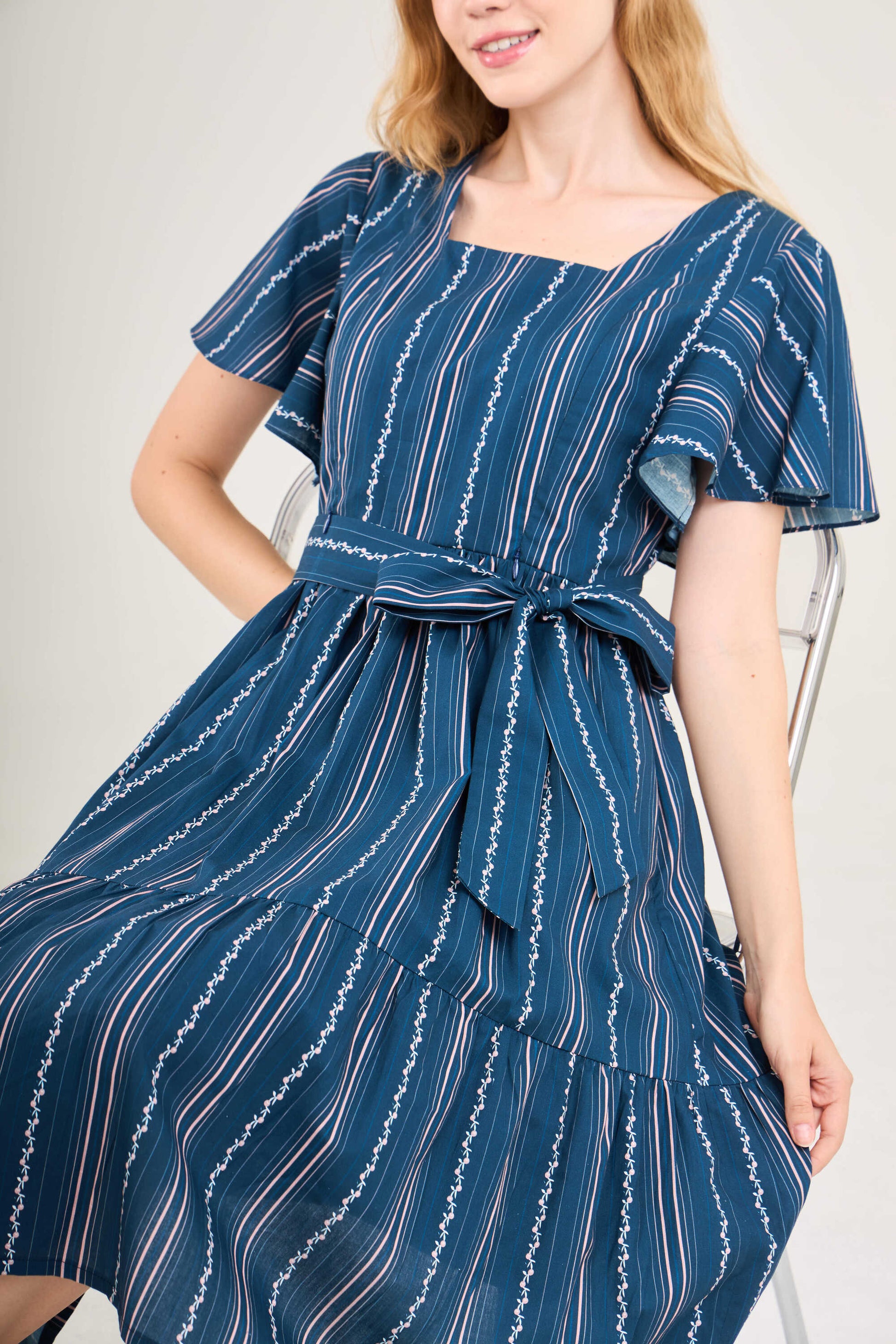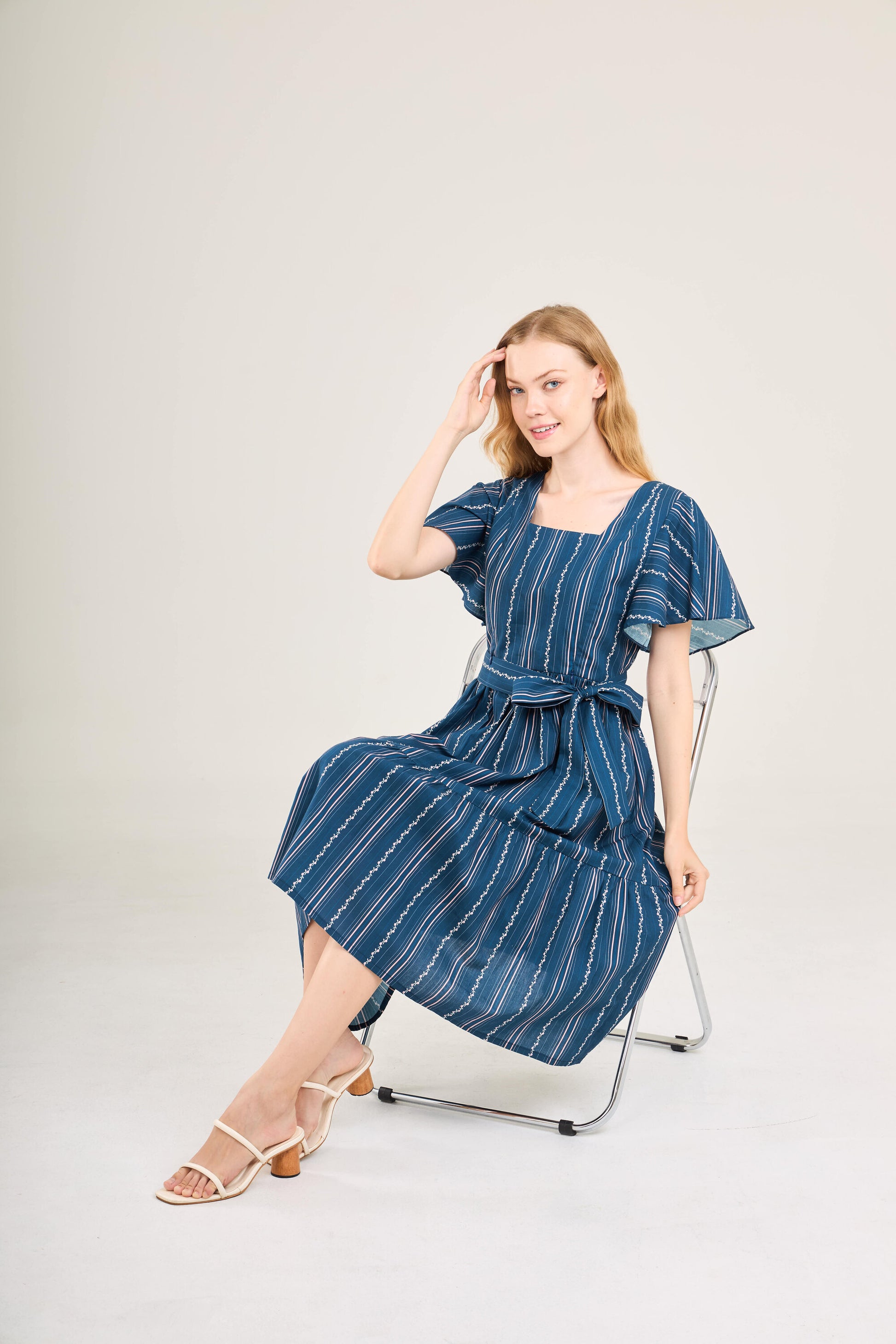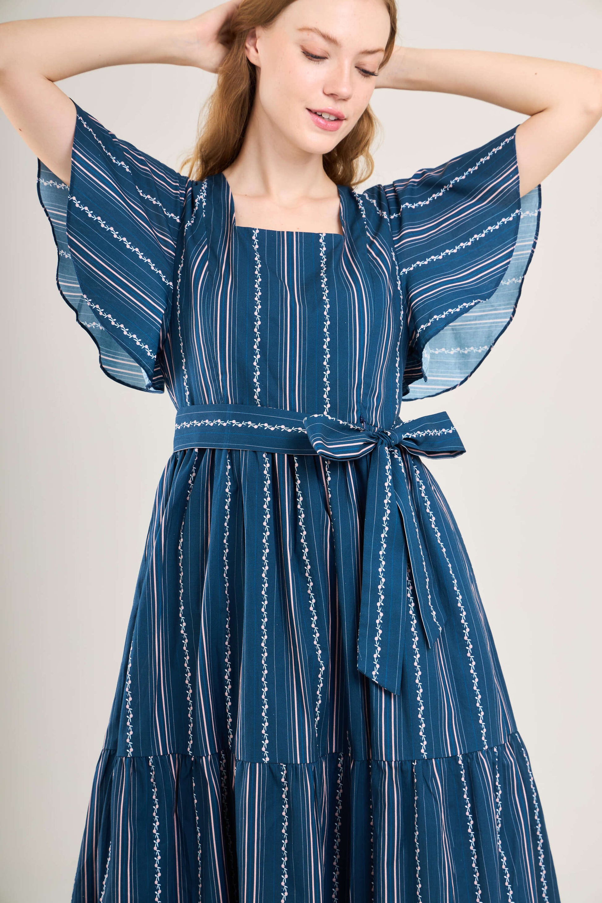 Presenting the Princess Midi Dress with flutter sleeves, our top-voted sleeve style by our customers in feminine Navy Vine Stripe print —crafted from soft, breathable 100% cotton.