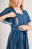 Princess Cotton Midi Dress with Nursing Zippers in Navy Vine Stripe