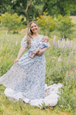 Versa Maxi Dress with Nursing Zippers in Blue Toile Butterfly
