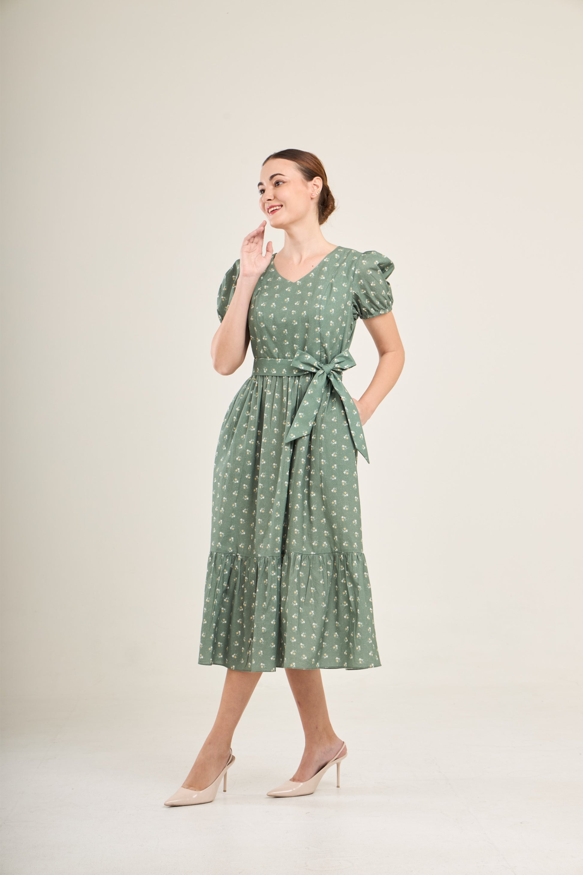 Introducing the newly added Charming Dress in Green Floral to our Mome Lite Collection. This elegant piece in the much-requested sage green shade features a soft, flowing silhouette and a delicate all-over floral print, bringing a refined, feminine touch to your wardrobe at a special price.