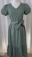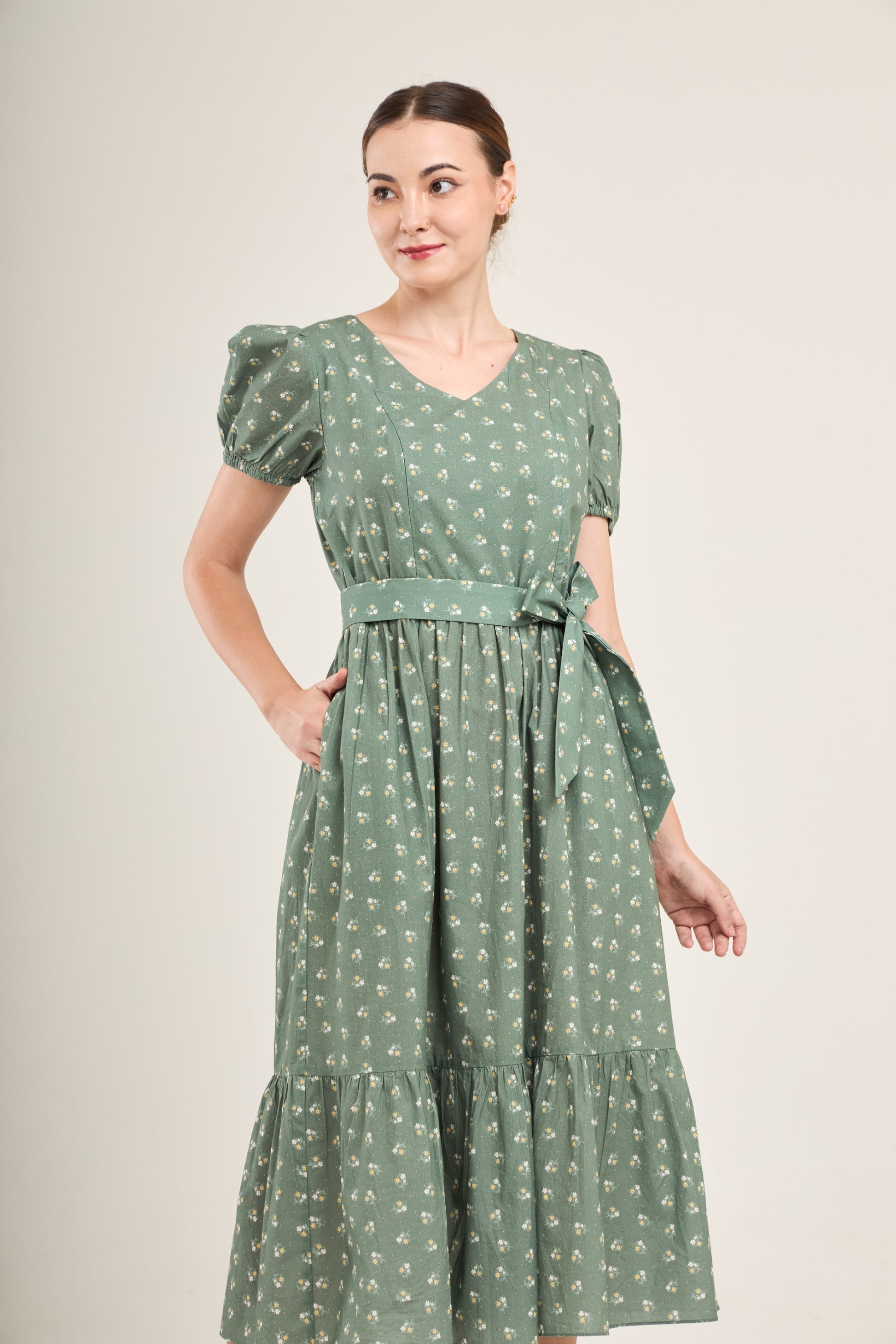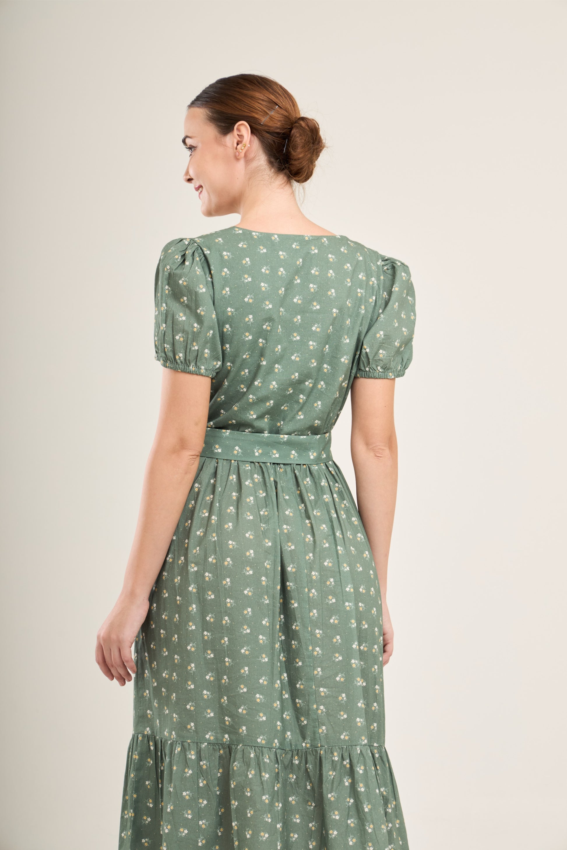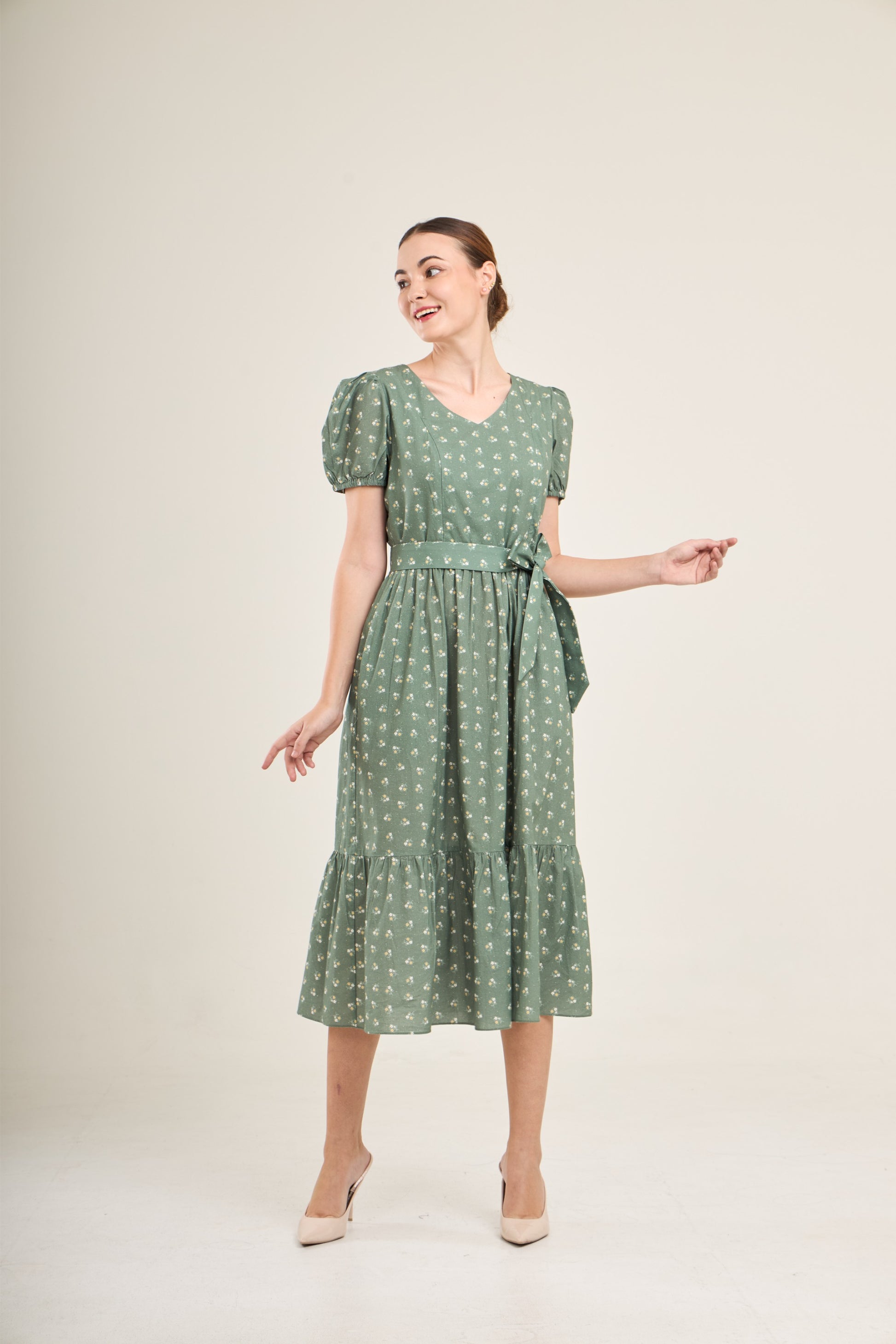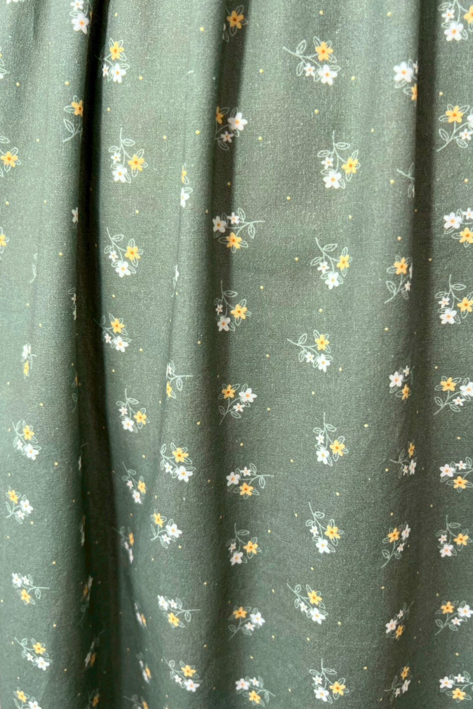 - Its unique green floral print makes it beautifully versatile, lovely for casual days out, sweet for family gatherings, and gracefully festive for the holidays. A feminine piece you can wear and feel pretty in for any occasion.