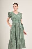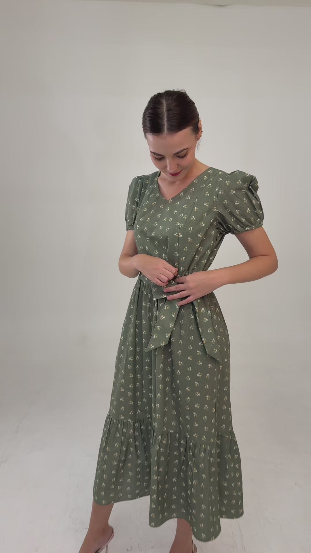 - Flattering Relaxed-fit midi silhouette with a V-neckline, puff sleeves, and a gently gathered skirt, comfortable, stylish, and perfect for postpartum bodies. Comes with a matching detachable sash that can be tied at the front or back for a fit that’s uniquely yours.