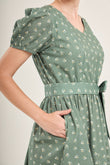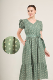 Charming Cotton Dress with Nursing Zippers in Green Floral