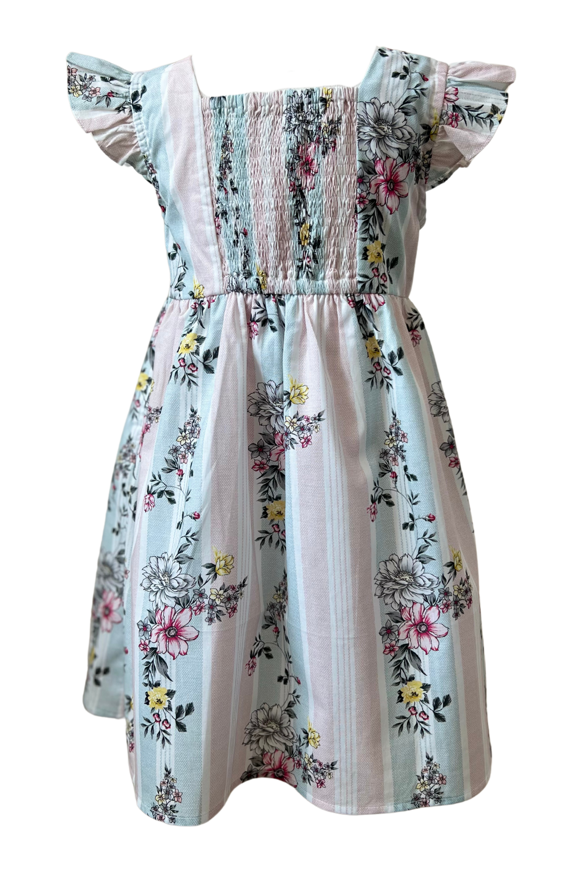 Crafted with love and care, this dress features flutter sleeves, a gathered skirt, and hand-smocking, making it easy to wear and accommodating changing sizes effortlessly. Your little one will feel comfortable and free to move, all while looking picture-perfect.
