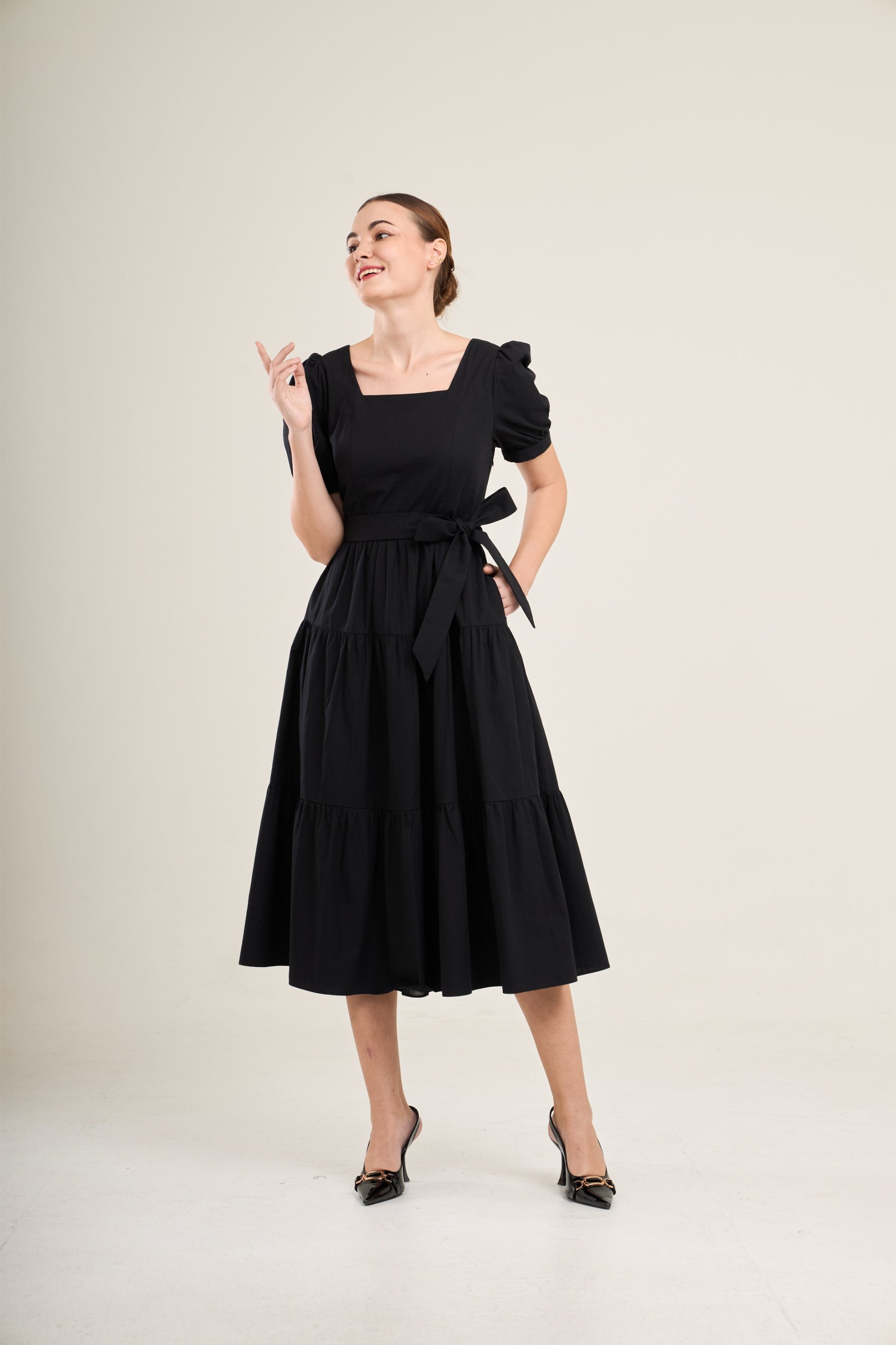 The Versa Cotton Dress in Black is a classic wardrobe essential for every mom. Its timeless black hue is flattering and versatile, designed to keep up with your busy day while giving you style and ease.