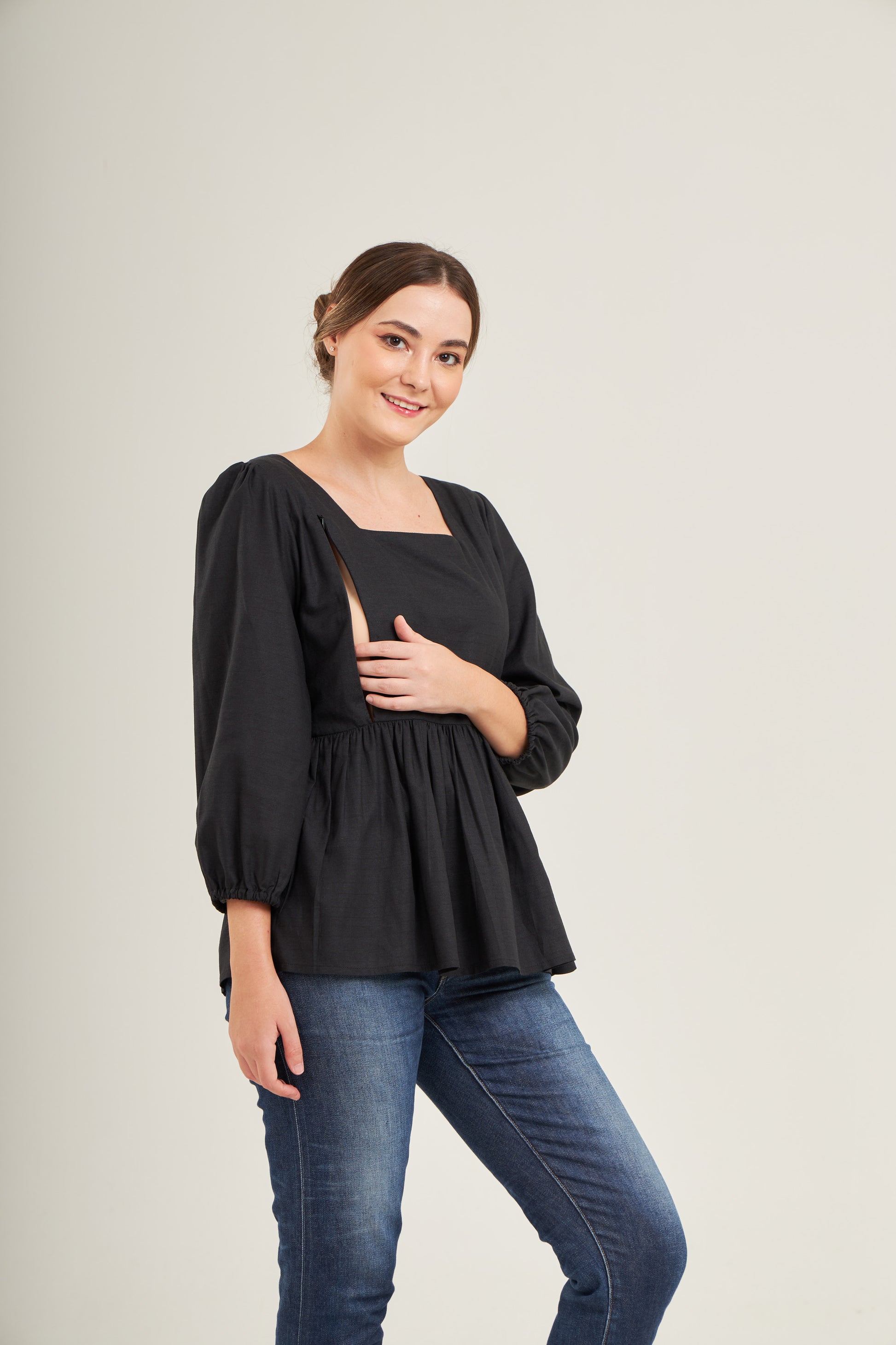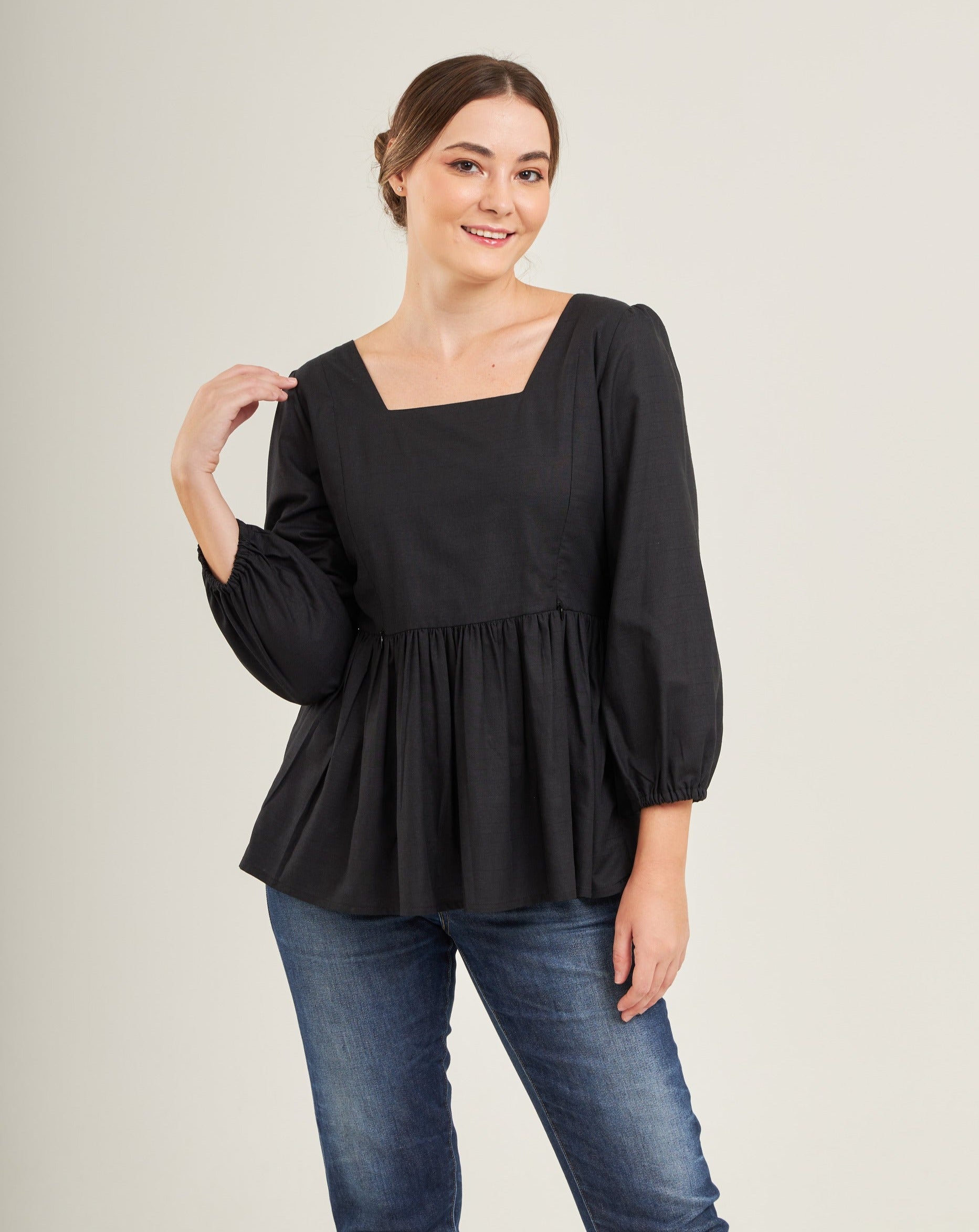 This classic top offers the perfect combination of comfort and femininity, perfect for all stages of motherhood and suitable for any occasion. Get ready for a flood of compliments!