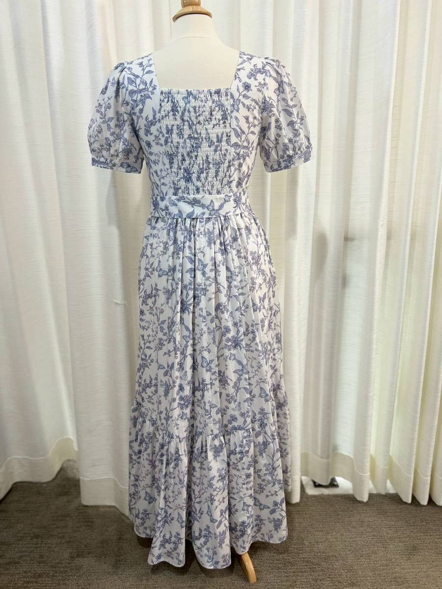 D31: Versa Cotton Dress with Nursing in Blue Toile Butterfly, Size M (Slightly Imperfect Product)